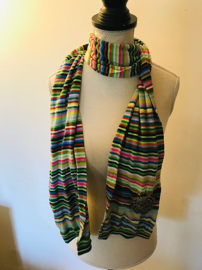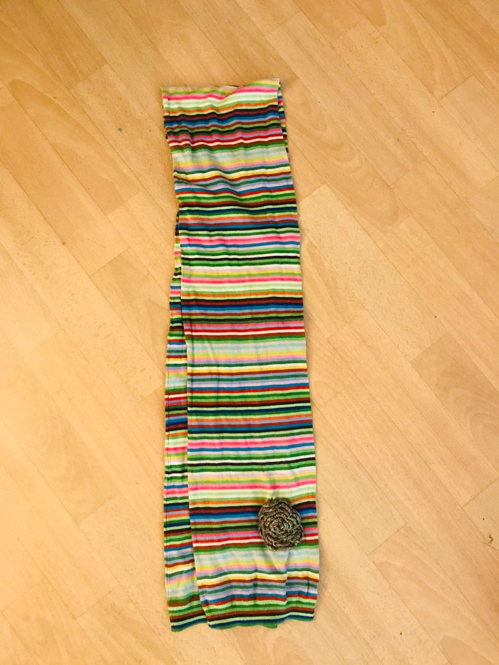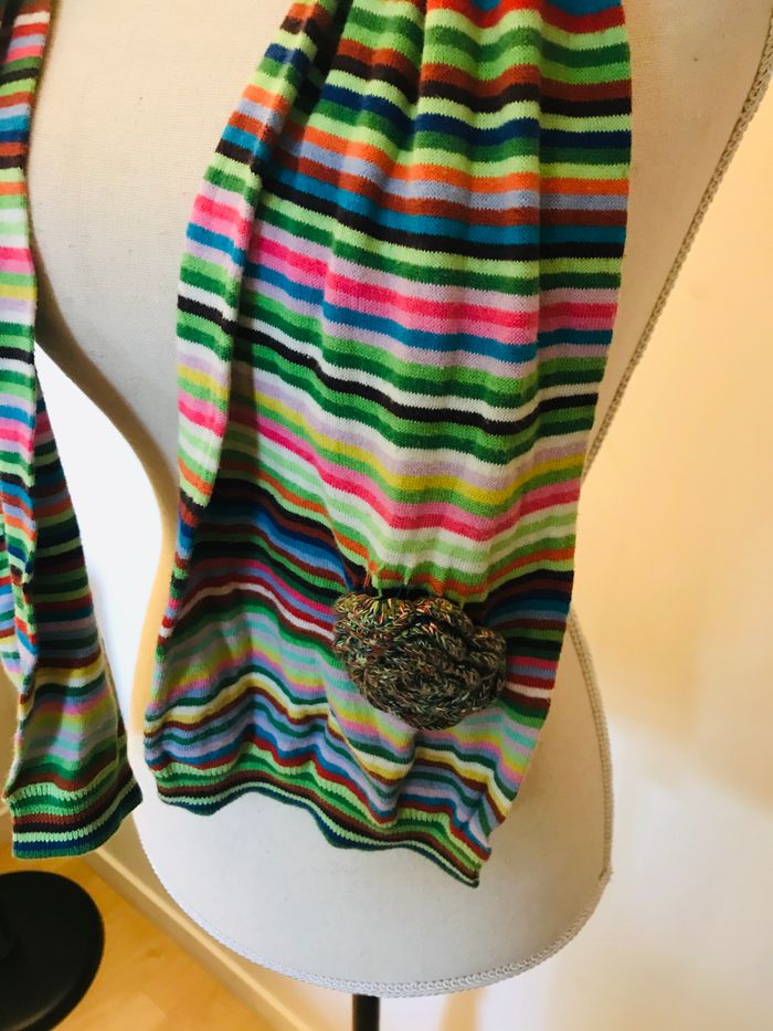 écharpe fille multicolore : vert kaki,bordeaux,bleu,orange,marron fleur en relief dimension = 155 x 18 cm en bon état