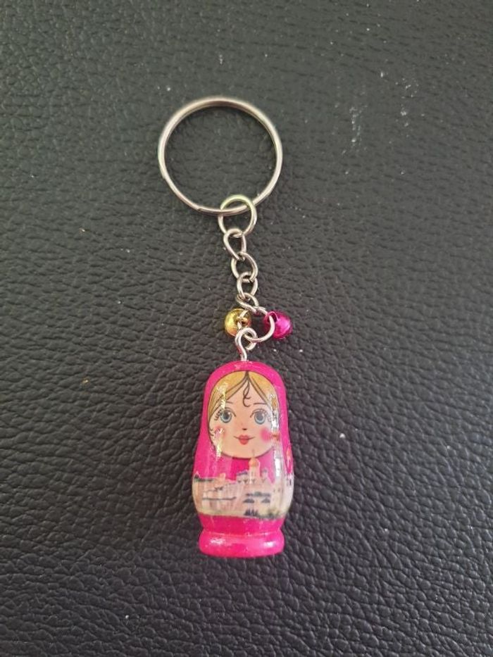 Porte-clés Poupée russe rose et dorée