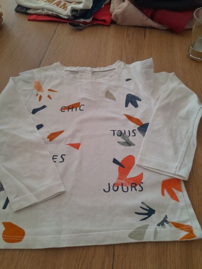 Jolie tee shirt tulle sur les manches. Écrit chic tous les jours
