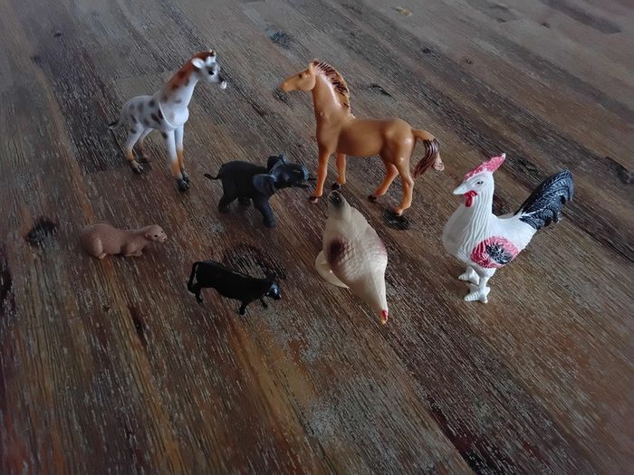 Lot composé de 7 animaux en plastique. Tailles différentes. Bon état. #julievertrezjouet