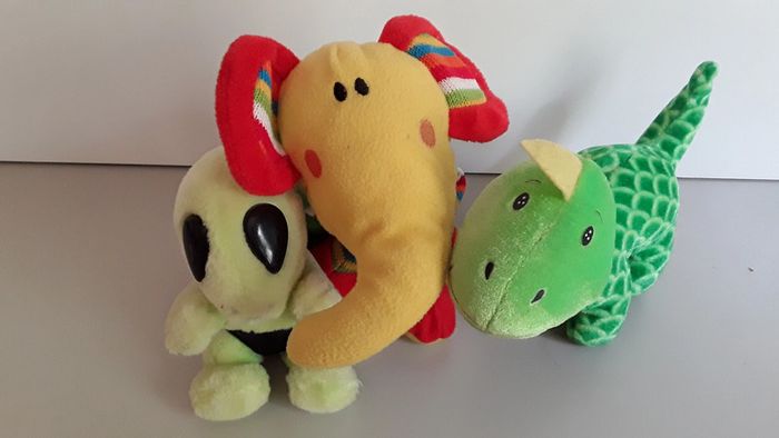 Lot composé de 3 peluches. Tailles et formes différentes. Bon état général. #julievertrezjouet