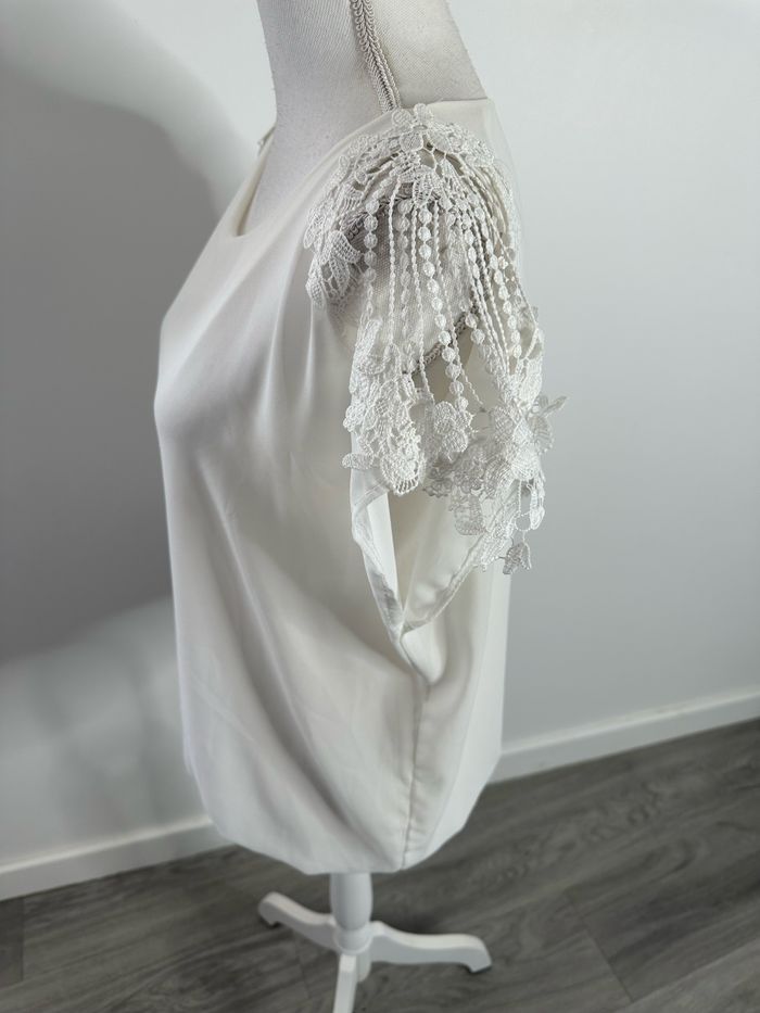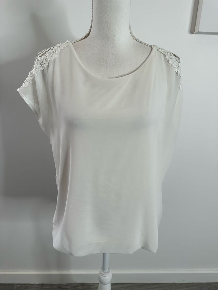 Blouse blanche et broderies ajourées T40 L - photo numéro 1