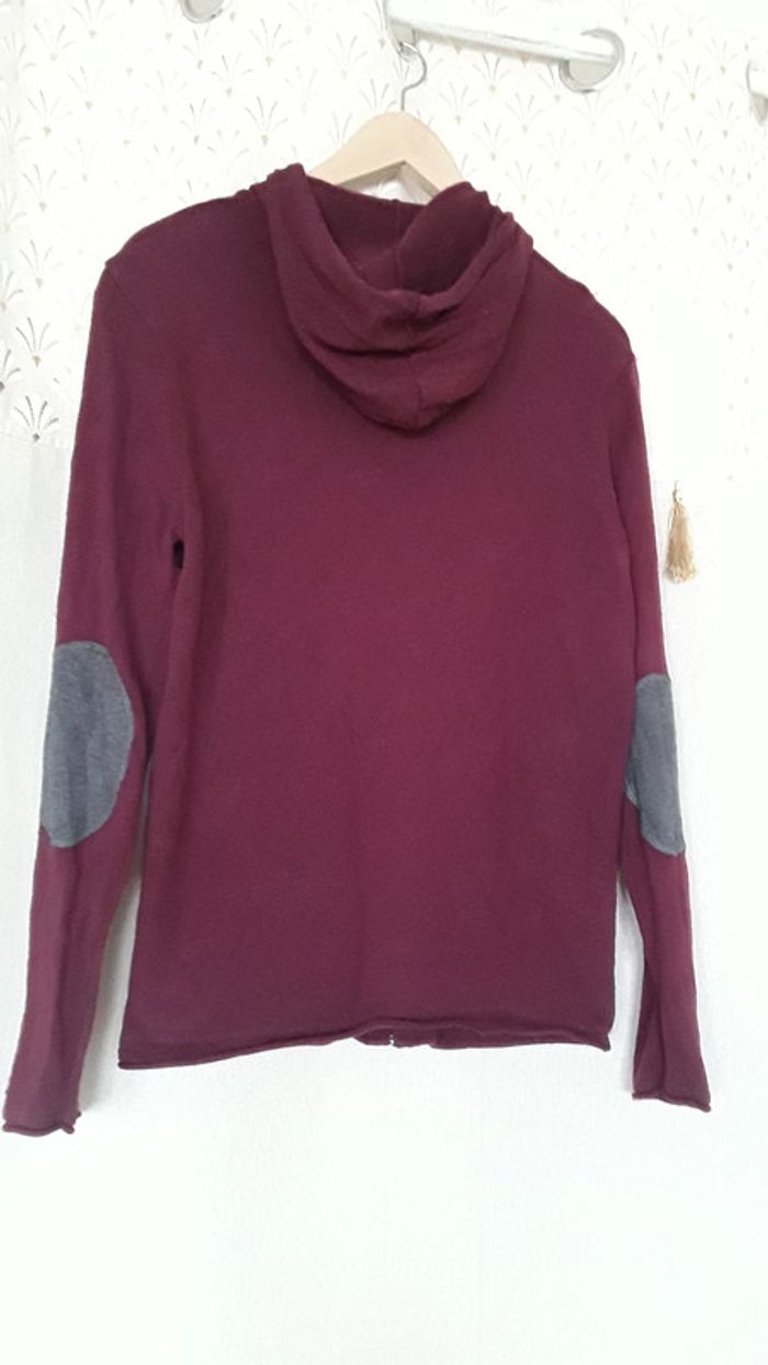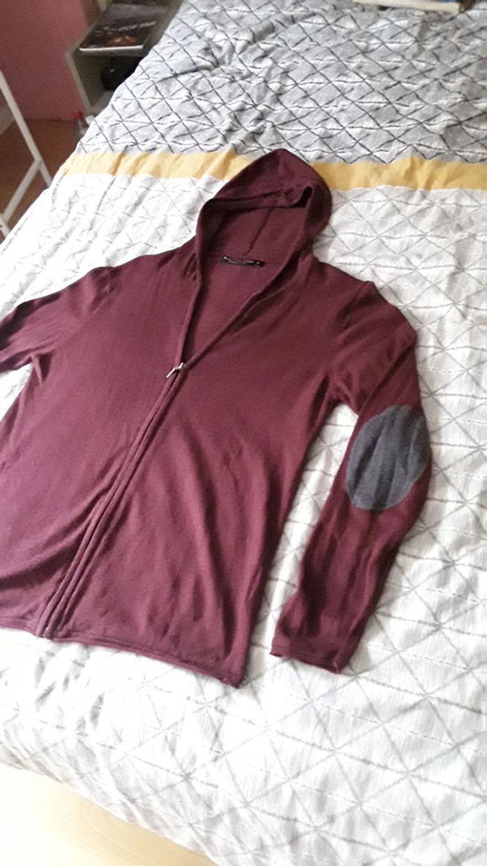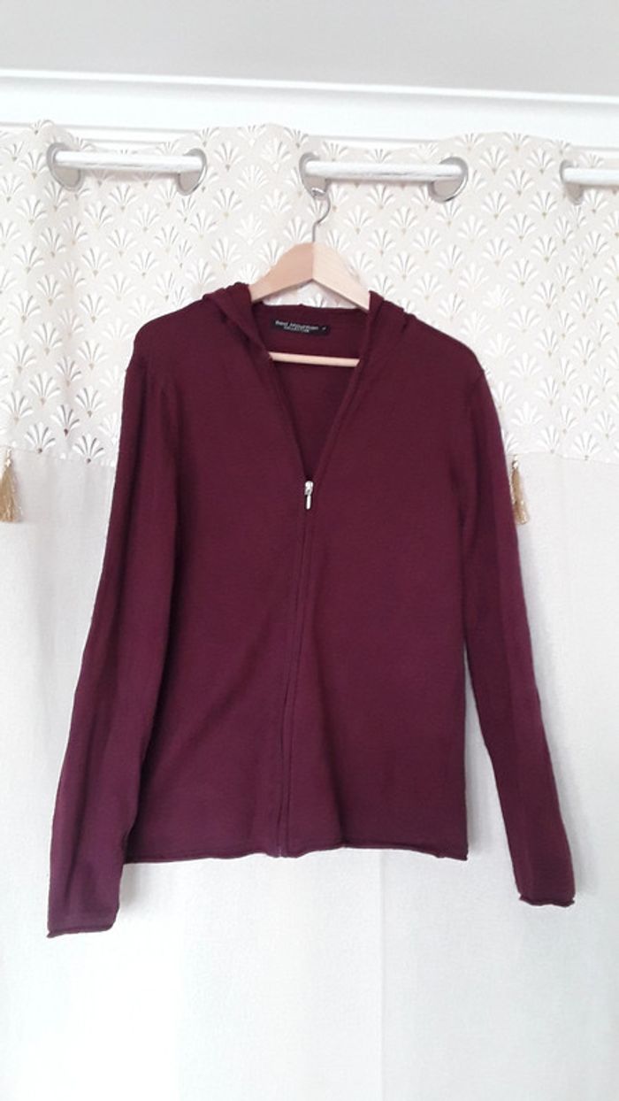 Pull zippé avec capuche. De couleur bordeaux, ovales gris au niveau des coudes. Best Mountain. Taille M. Bon état. #julievertrezhomme
