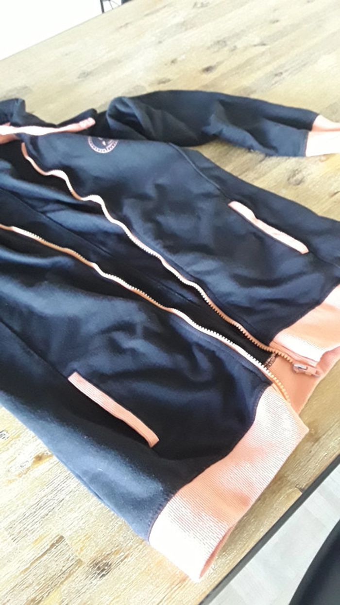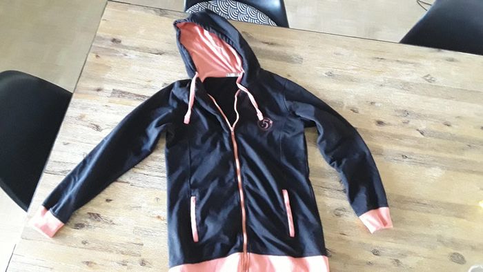 Veste zippée à capuche noire et orange, avec 2 poches. Blancheporte Taille 34/36 #julievertrezfemme #julievertrezxs #julievertrezs
