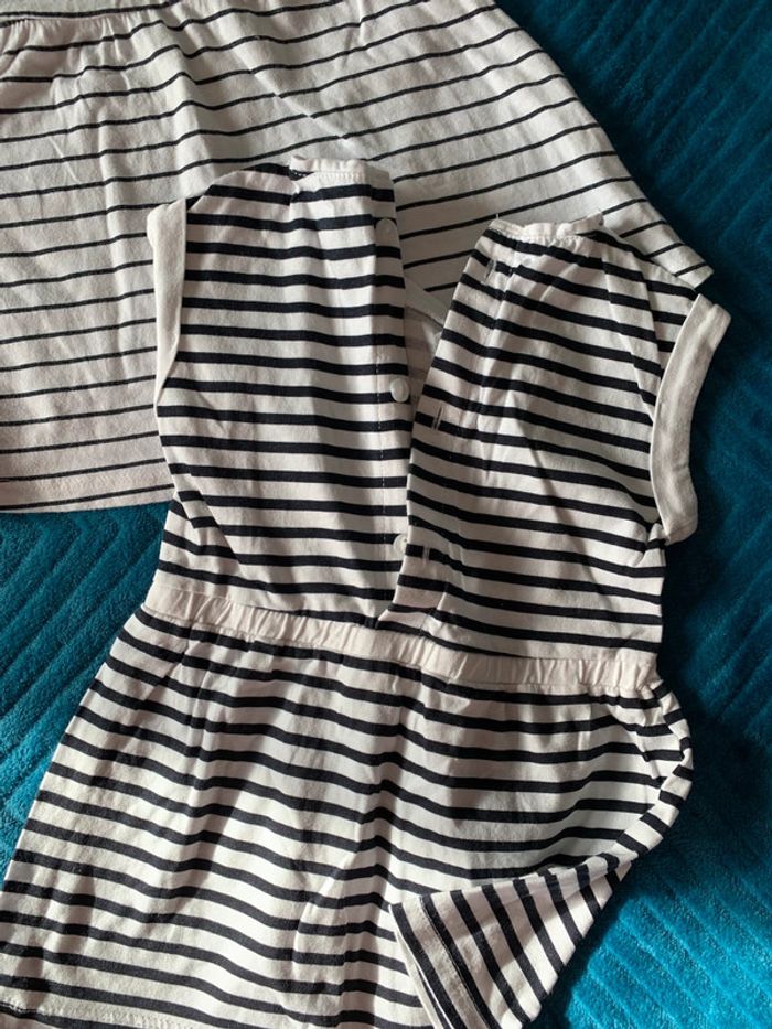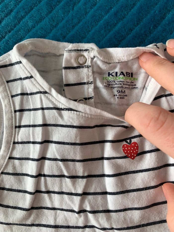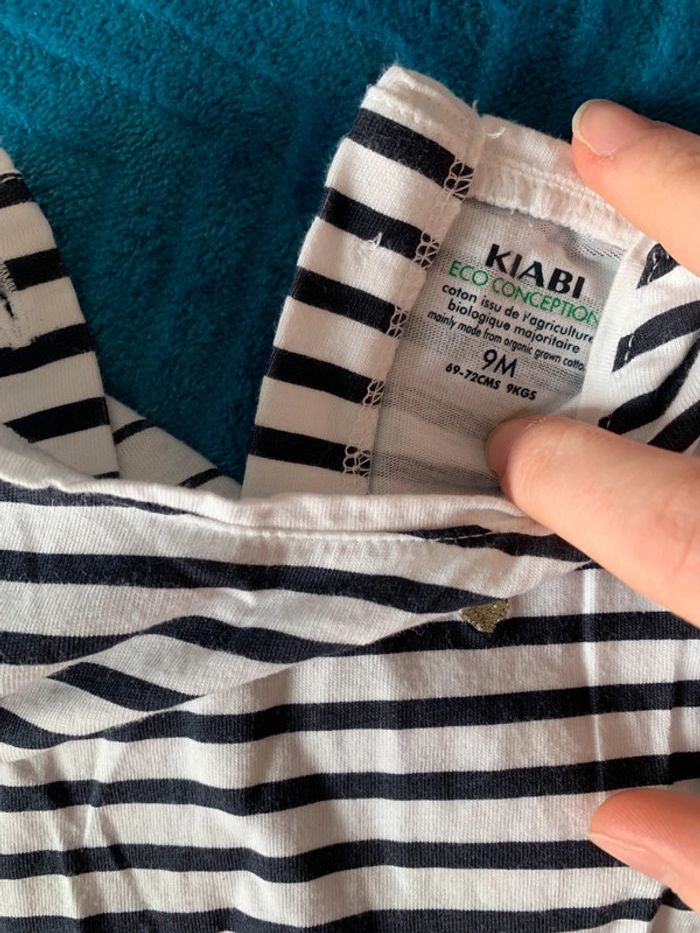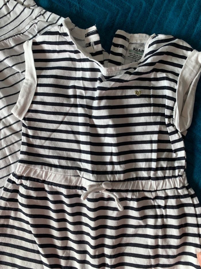 2 robes à rayures / marinière Taille 9 mois Celle avec la fraise a été portée plusieurs fois, l’autre seulement 2 fois
