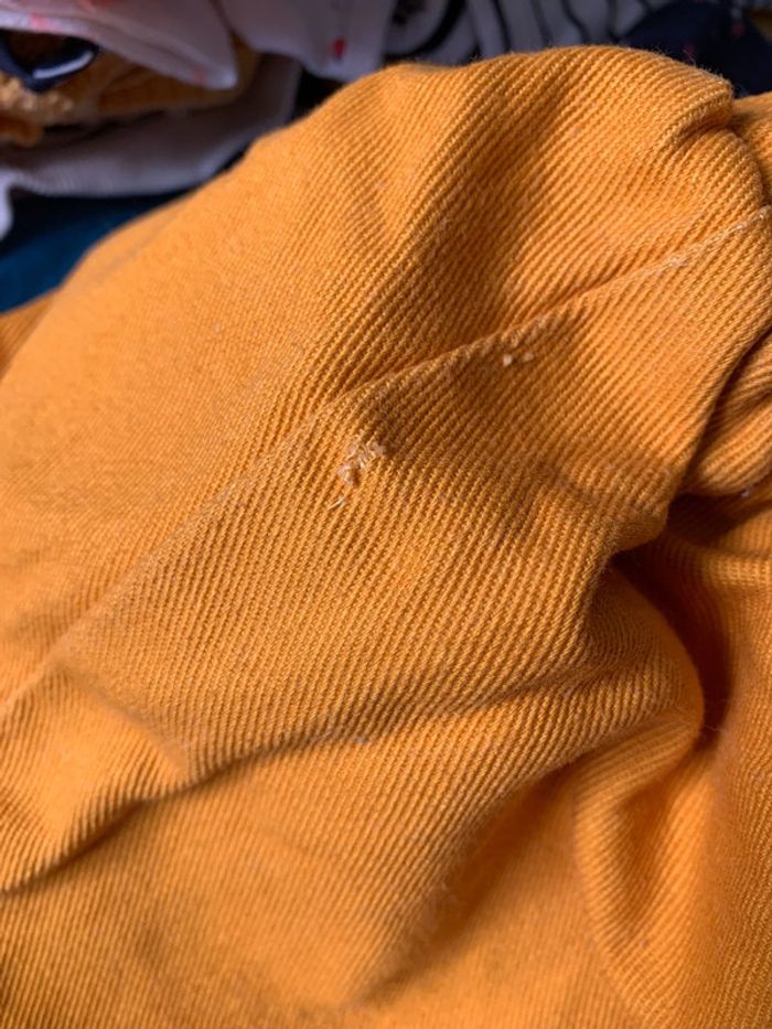 Robe en matière jean couleur jaune moutarde. Les bretelles sont réglables Un petit accroc pas visible porté