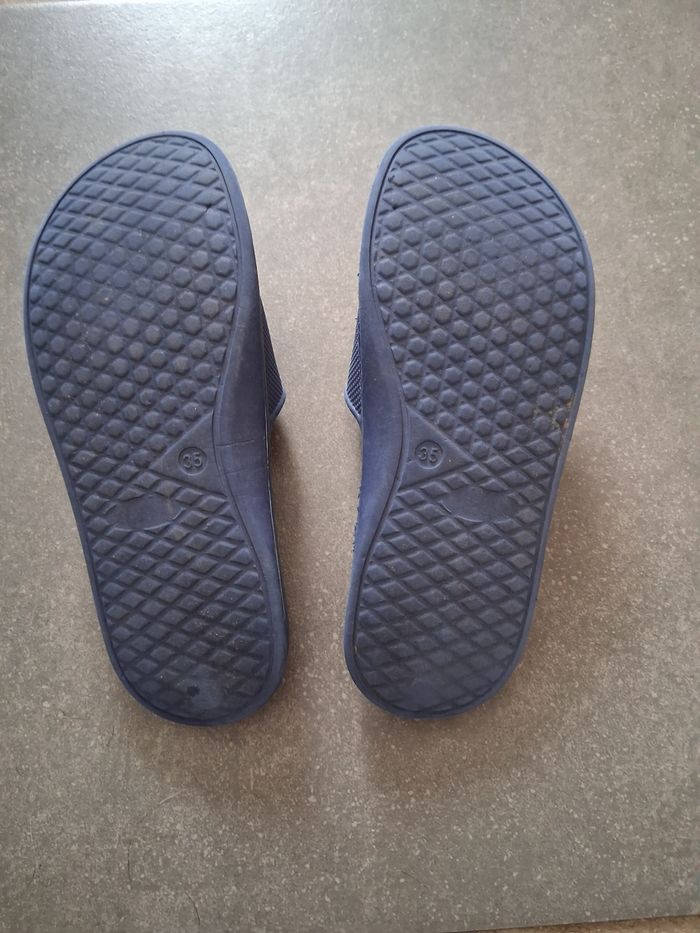 Sandales bleue marine pointure 35 légèrement abîmer sur la semelle ou ons marche propre laver avant la vente peuvent encore servir