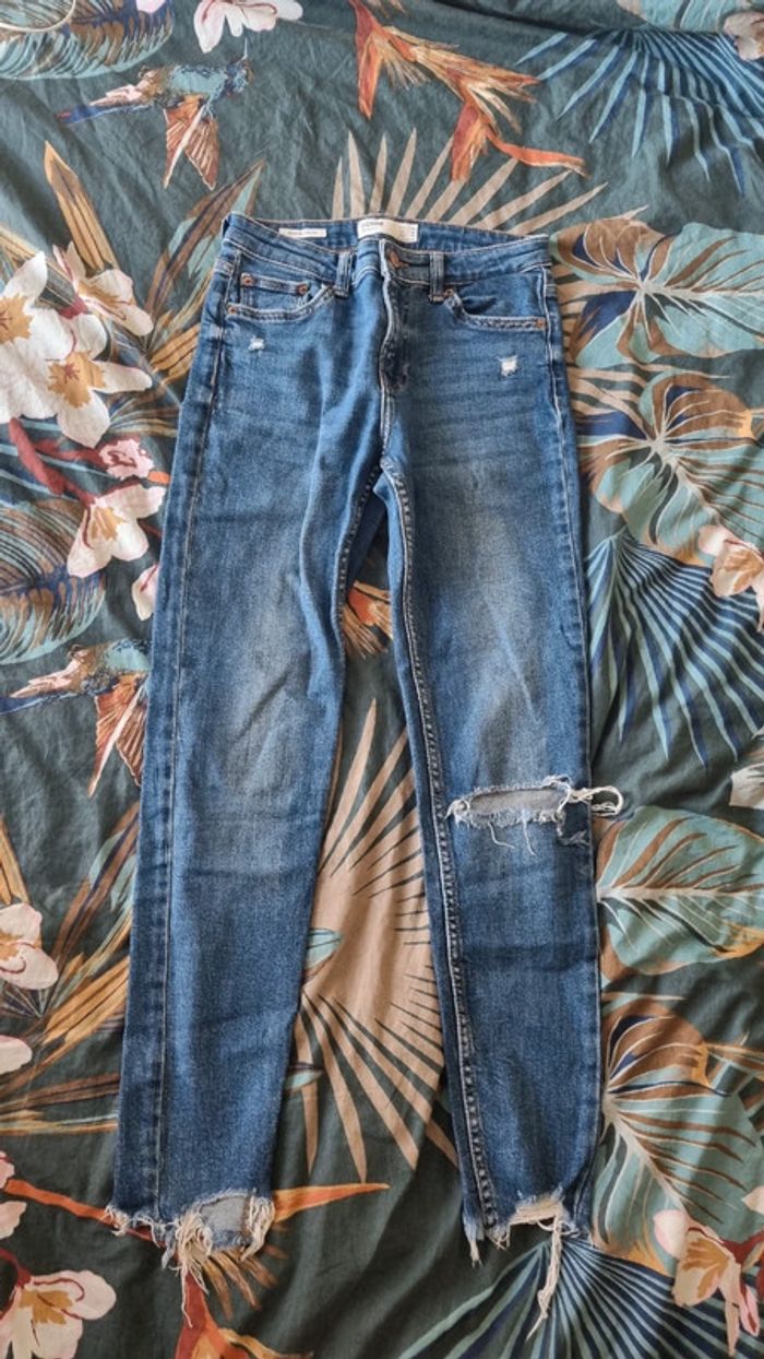 Très bon état Pas de tâches ni de trous sauf celui de base Taille mi haute (médium rise) Bershka Bas effilé
