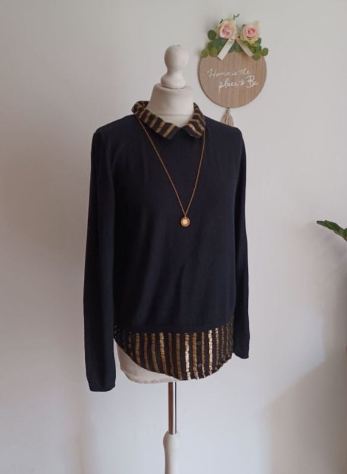 Pull noir mi-saison surchemise noir & or Camaieu Taille 38