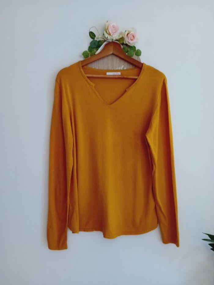 Pull moutarde mi-saison encolure pailleté Camaieu Taille 42