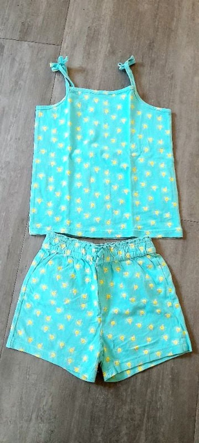 Débardeur à bretelles, short taille élastiquée. 100% coton, en parfait état