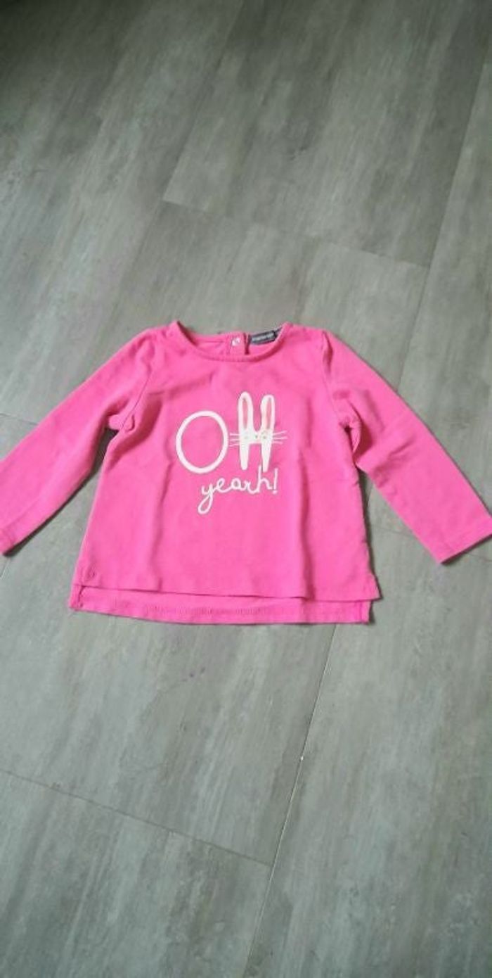 En molleton, rose imprimé blanc. Pressionné au col. Très bon état