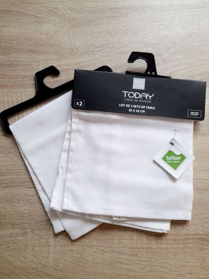 Le lot comprend 4 set de table en tout. Neufs, 35/45 cm, en toile 100% coton, couleur blanc