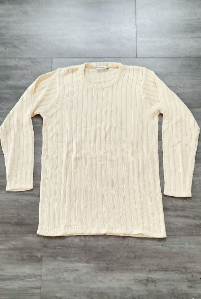 Neuf. Léger, en mailles côtelées 50% coton 50% acrylique. Beige-crème