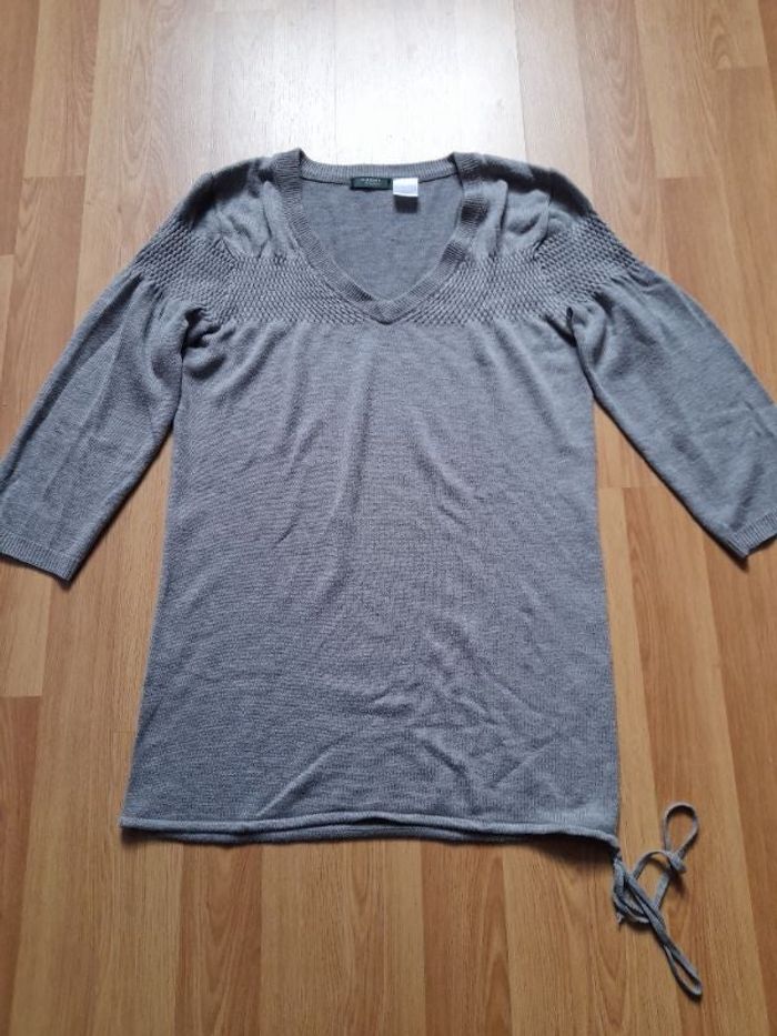 Col V gris 100% acrylique, lien a la base. Porté mais en bon état