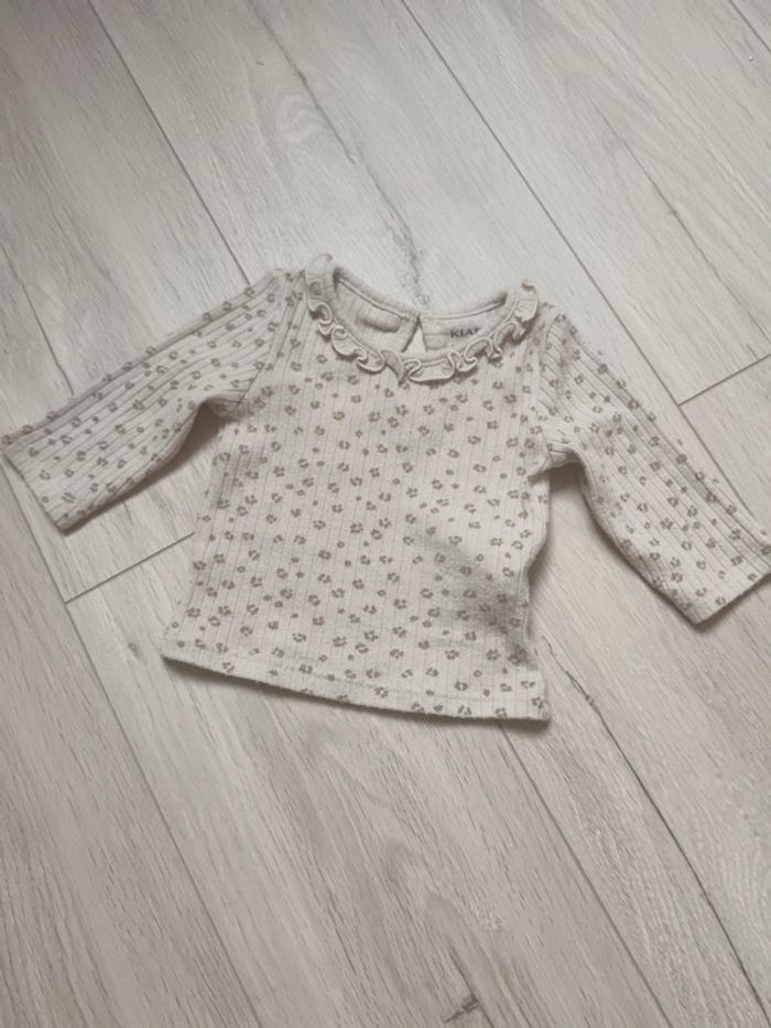 Tee shirt manches longues motifs animalier, léopard, très doux. Quelques bouloches. Taille 3 mois. Réduction sur les lots