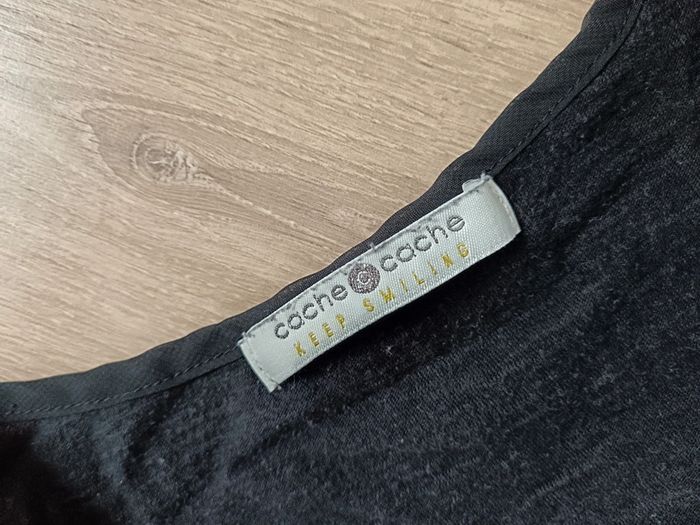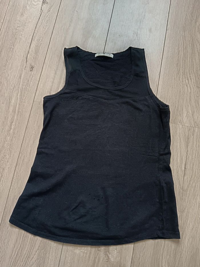 Débardeur bi matière noir avec col en transparence. 4 petits trous (à cause de la ceinture). Réduction sur les lots