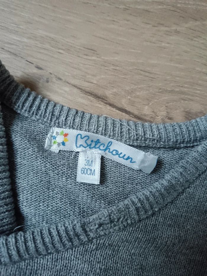 Brassière gilet gris mixte taille 3 mois, très bon état. Réduction sur les lots