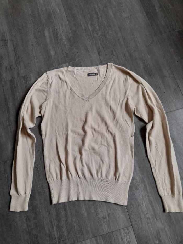 Petit pull fin, 80% coton 20% polyamide, col V couleur crème
