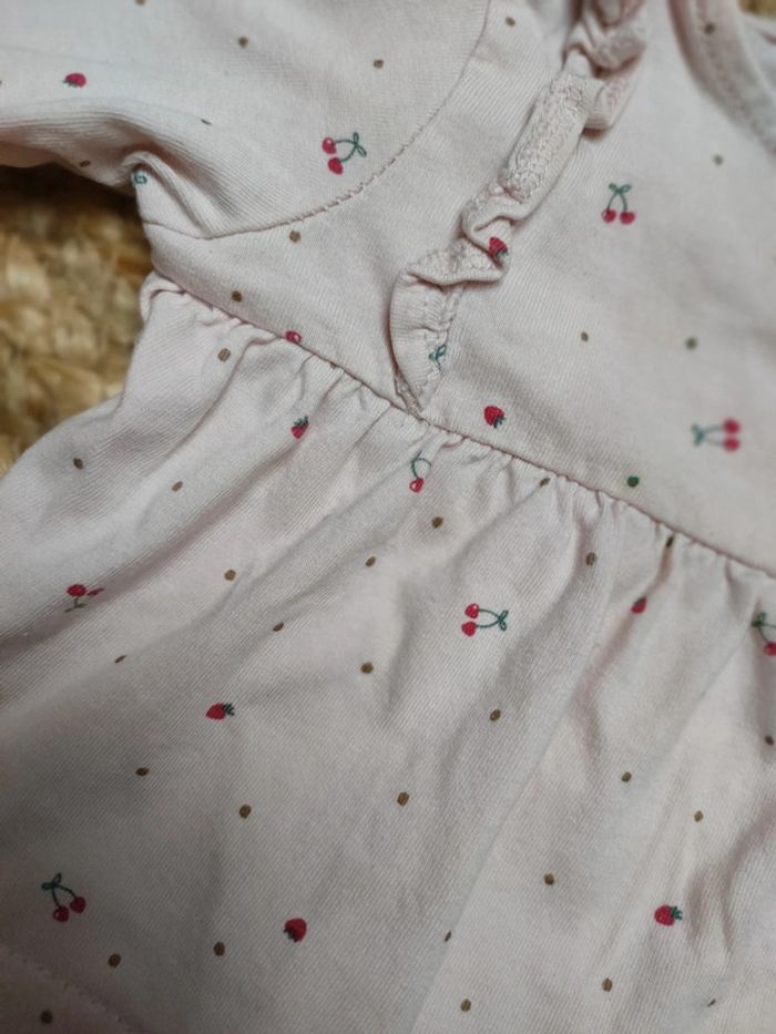 Lot de 2 hauts manches longues, 1 écru avec petites fleurs et le second rose pâle avec fraises et cerises. En très bon état. Réduction sur les lots