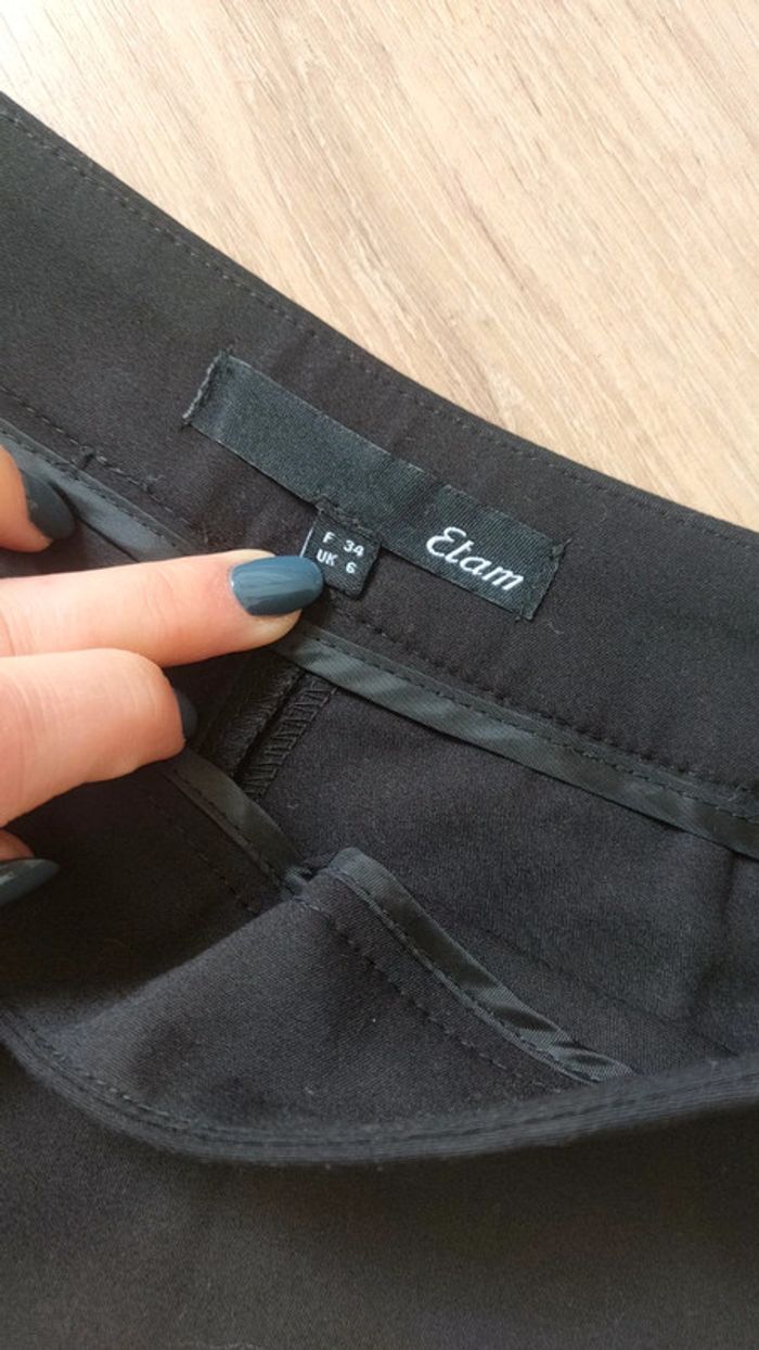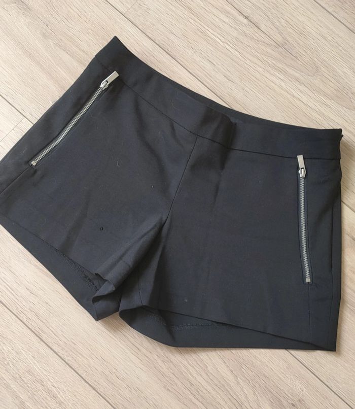 Short noir Etam, chic avec une fausse poche à l'arrière. Également fausses poches avec fermeture à l'avant. Taille 34. Petit accro sur le devant (voir dernière photo) d'où le prix.