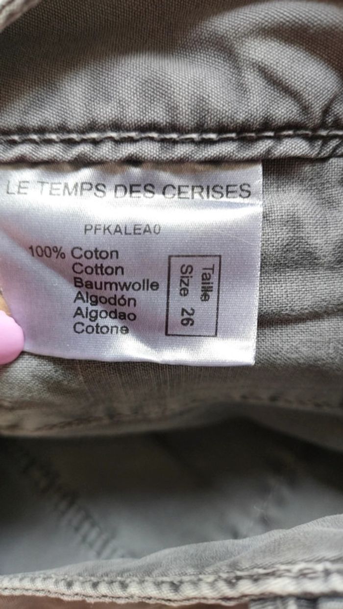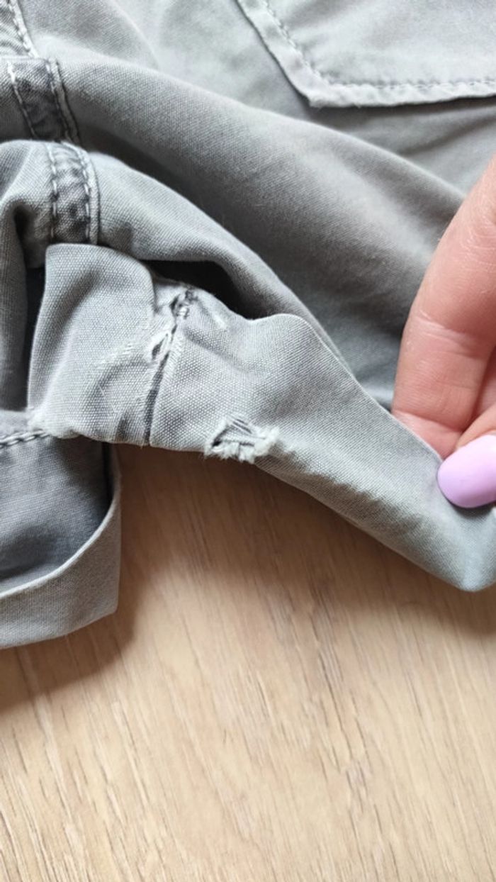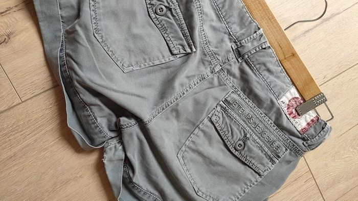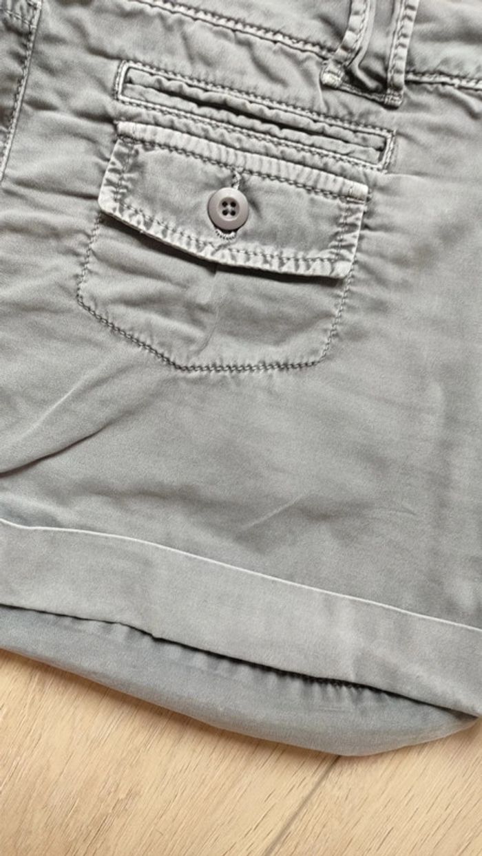 Short gris taille 26 avec poches, couleur un peu délavé et une petite déchirure à l'entrejambe (voir photos).