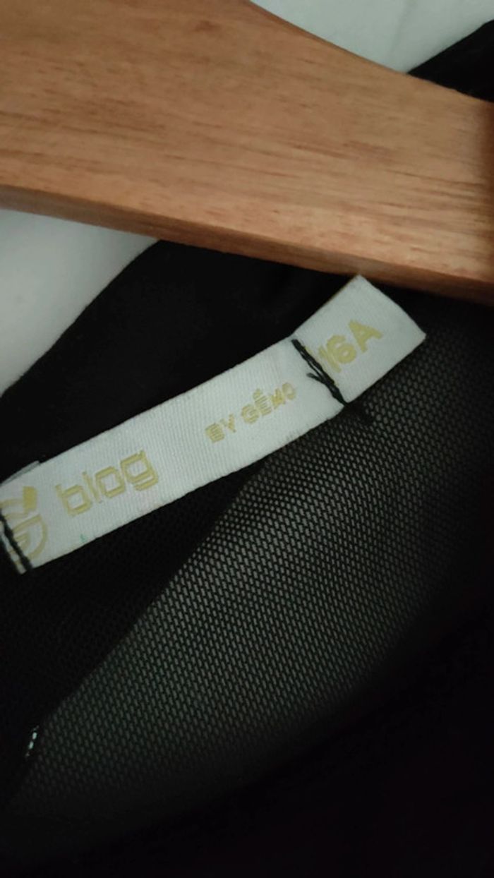 Tee-shirt bi matière noir, les épaules et les manches sont transparentes avec un col claudine. Très bon état. Réduction sur les lots