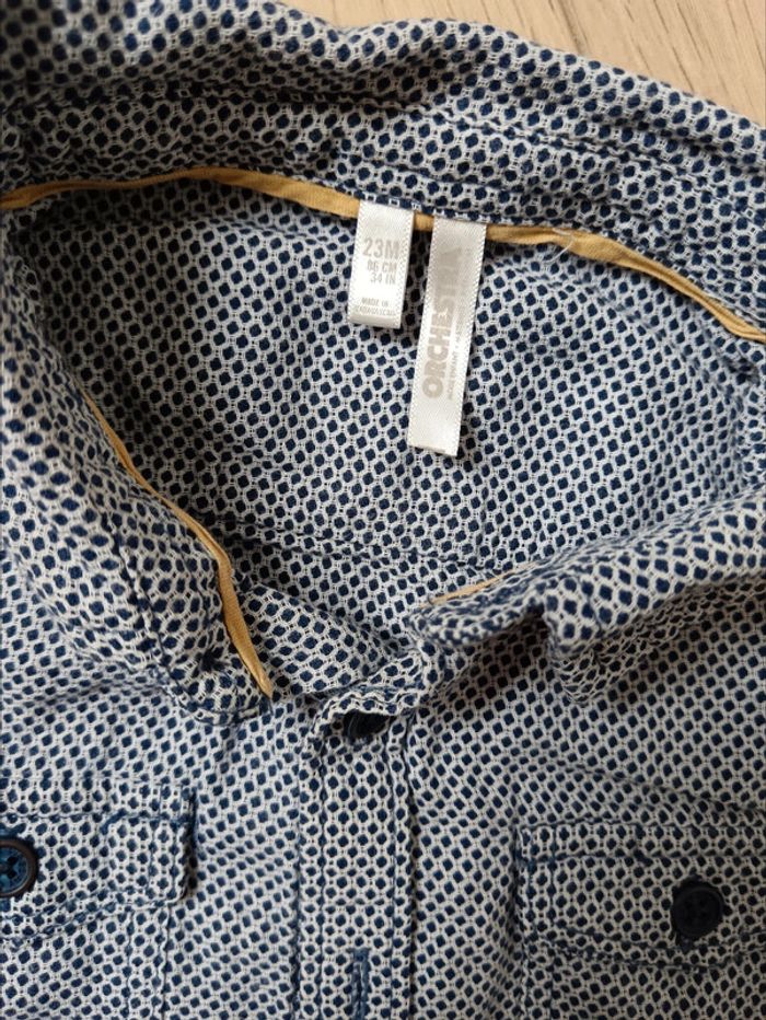 Chemise bleu marine et blanche à pois. Tres bon état Réduction sur les lots