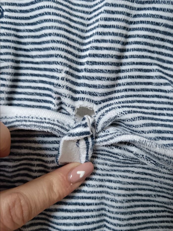 Pyjama 23 mois/86cm rayé avec motif nounours. En bon état général mis à part le défaut des boutons dans le dos (voir photo). Réduction sur les lots