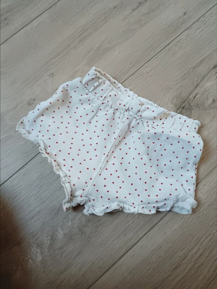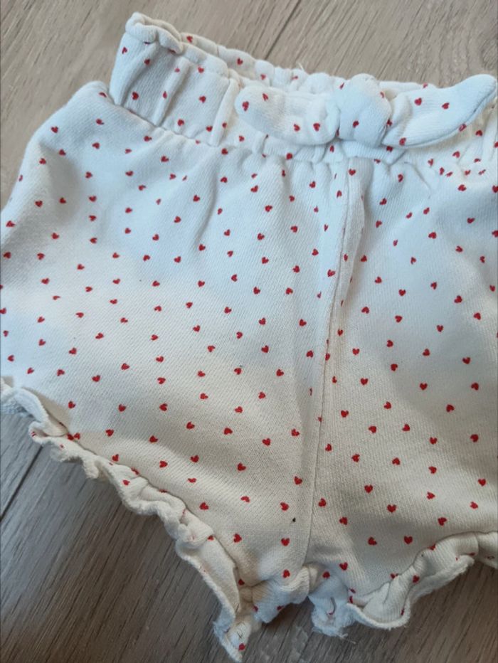 Short blanc avec coeur rouge, très bon état. Taille 9 mois. Réduction sur les lots
