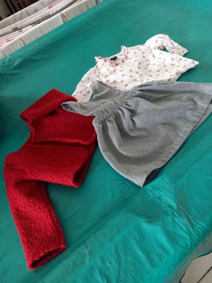 1 robe, 1 chemisier, 1 gilet bouclettes
