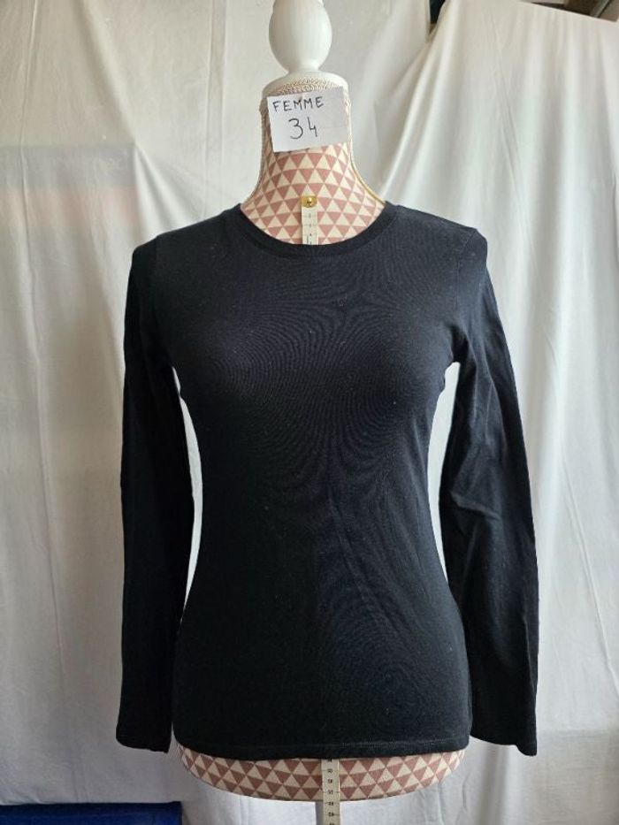 Tee-shirt, noir, en excellent état, en coton, longueur 57cm, largeur d'épaule 34cm, largeur sous bras 40cm, marque Kiabi =3€