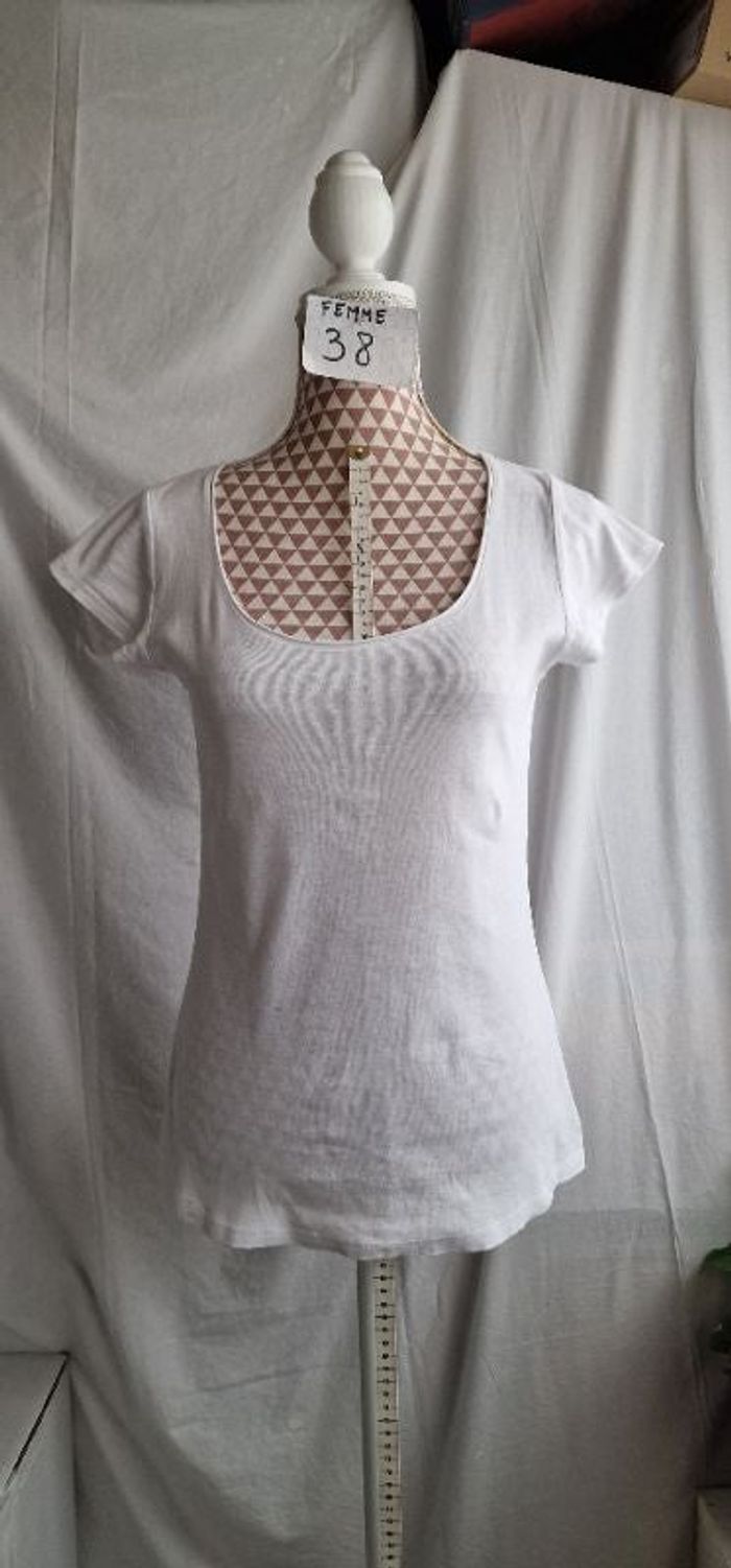 Tee-shirt, blanc, en très très bon état, en coton, longueur 62cm, largeur d'épaule 32cm