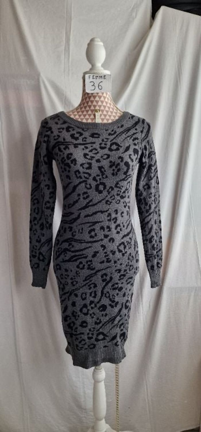 Robe, grise à motif noir, en coton &acrylique, neuve juste lavé, longueur 90cm
