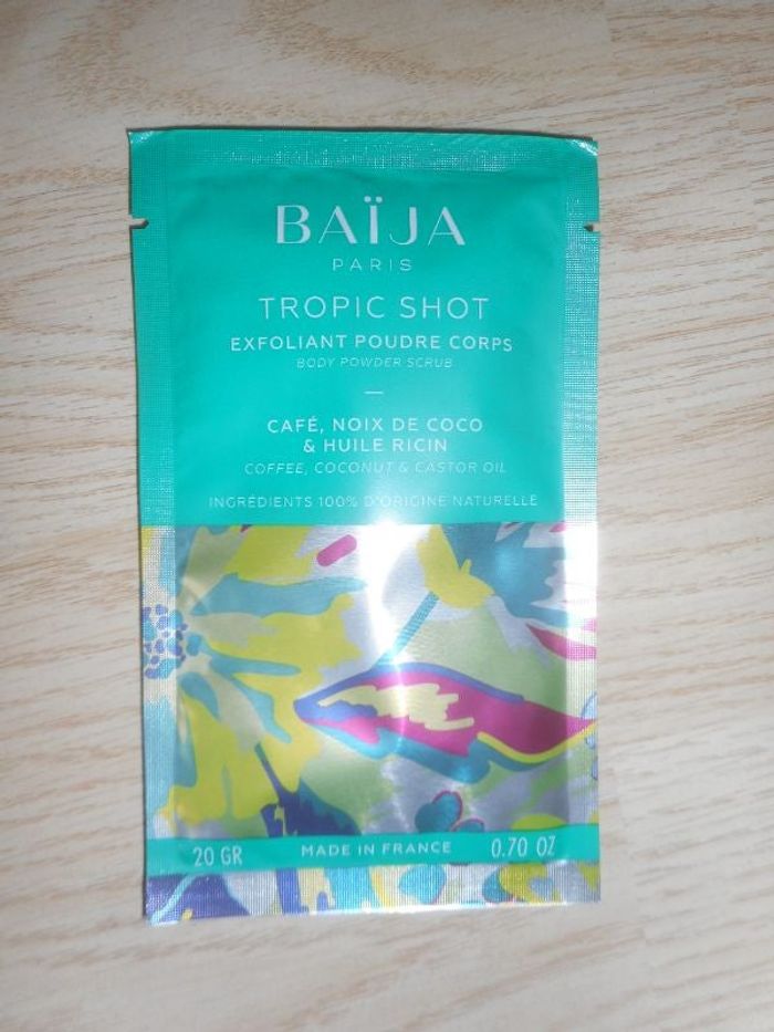 Exfoliant Poudre Corps Unidose Tropic Shot Baïja. Contenance 20g.