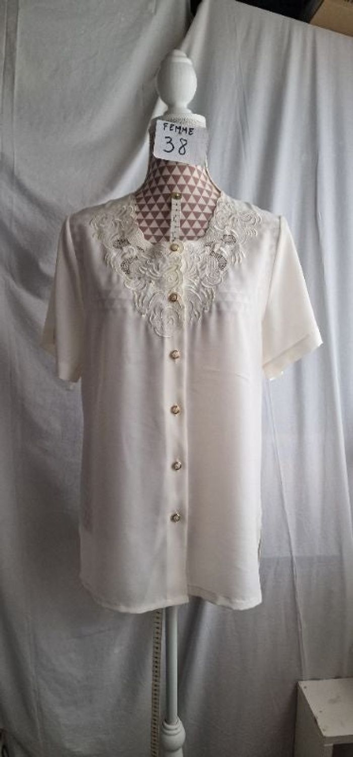 Blouse, crème, en très très bon état, en polyester, longueur 68cm, largeur d'épaule 38cm, largeur sous bras 50cm, marque Soler =7€