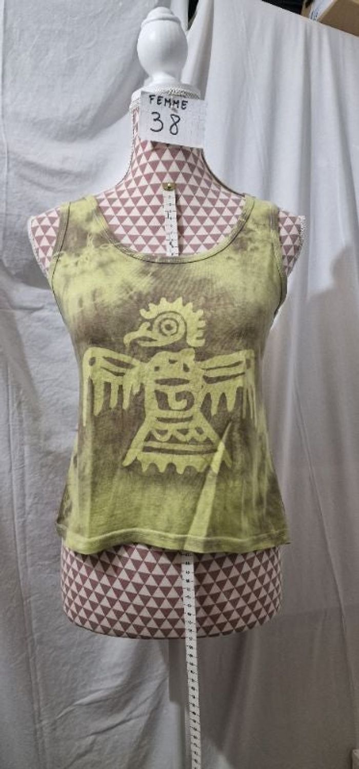 Débardeur, vert, en très très bon état, en coton, longueur 47cm,largeur d'épaule 30cm, largeur sous bras 41cm, marque Doris=4€