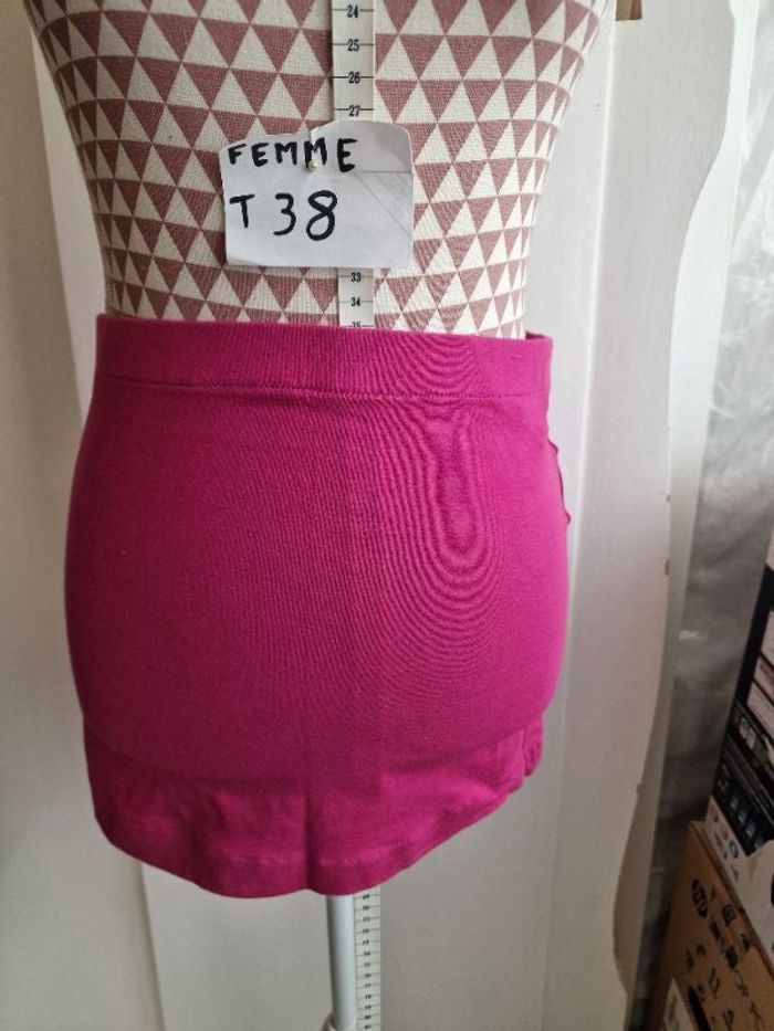 Mini jupe, rose,en coton & elasthanne, en très très bon état, longueur 31cm,marque Walk&Talk =4€