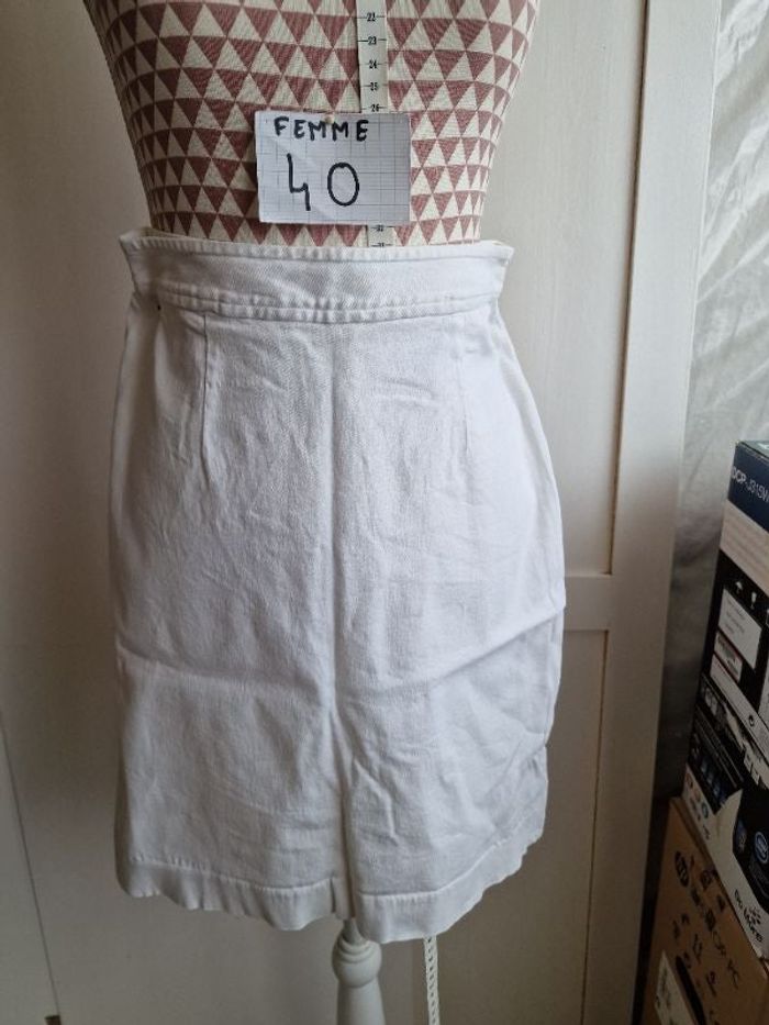 Jupe, midi, blanche, en coton & elasthanne, en très très bon état, longueur 51cm, marque La Redoute =5€