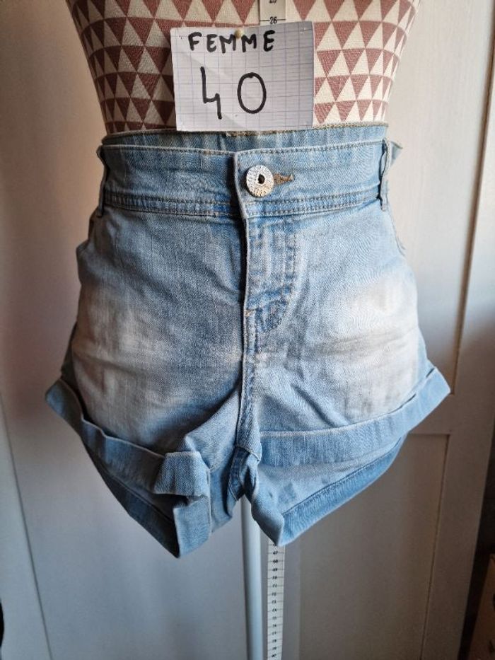 Short en jeans, bleu délavé, taille standard,en coton & elasthanne, longueur 29cm,en très très bon état, marque Kiabi =5€