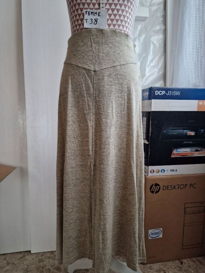 Jupe, beige chiné, en polyester, en très très bon état, longueur 83cm, marque Naftaline Paris =5€