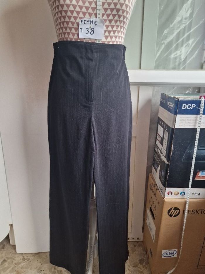 Pantalon, noir à très fines rayures grises, en très très bon état,  en polyester, taille haute