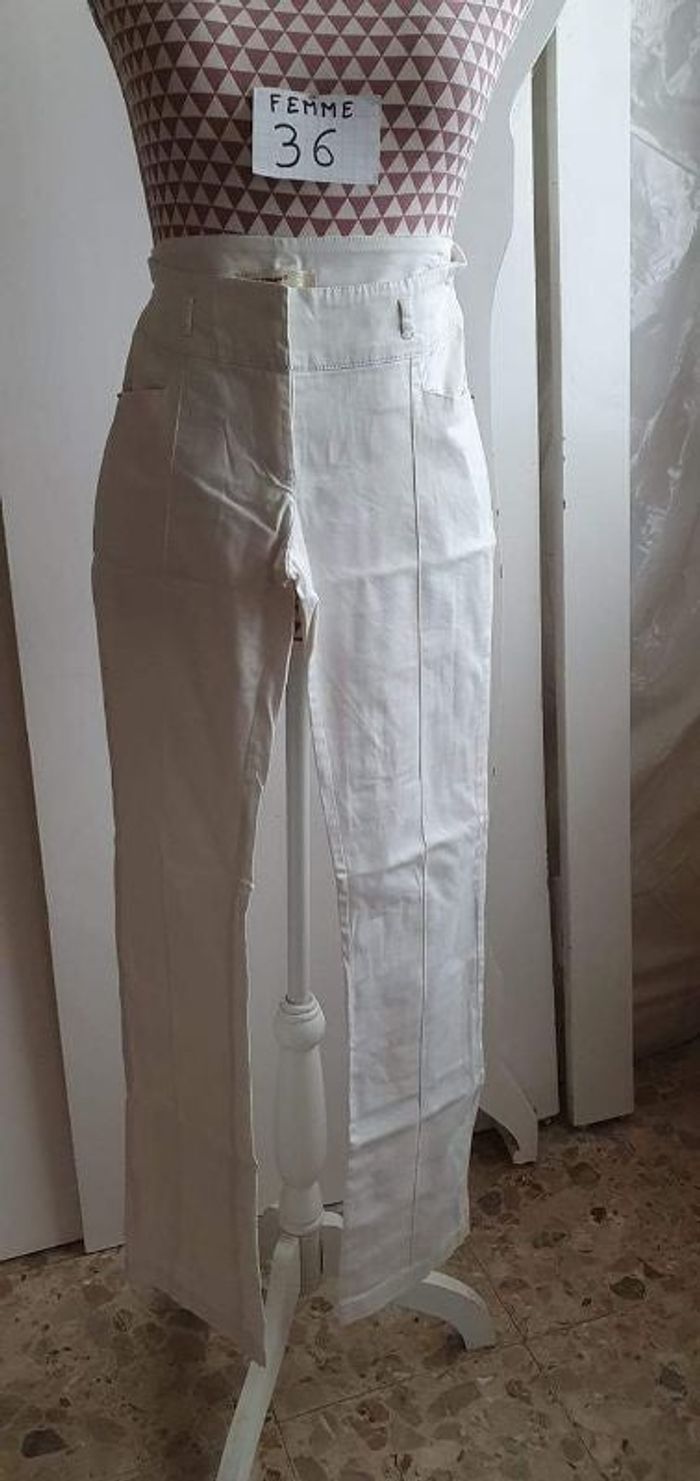 Jeans, blanc cassé, coton et elasthanne, longueur 100cm,taille standard, forme regular, en très très bon état, marque Lulumary =7€