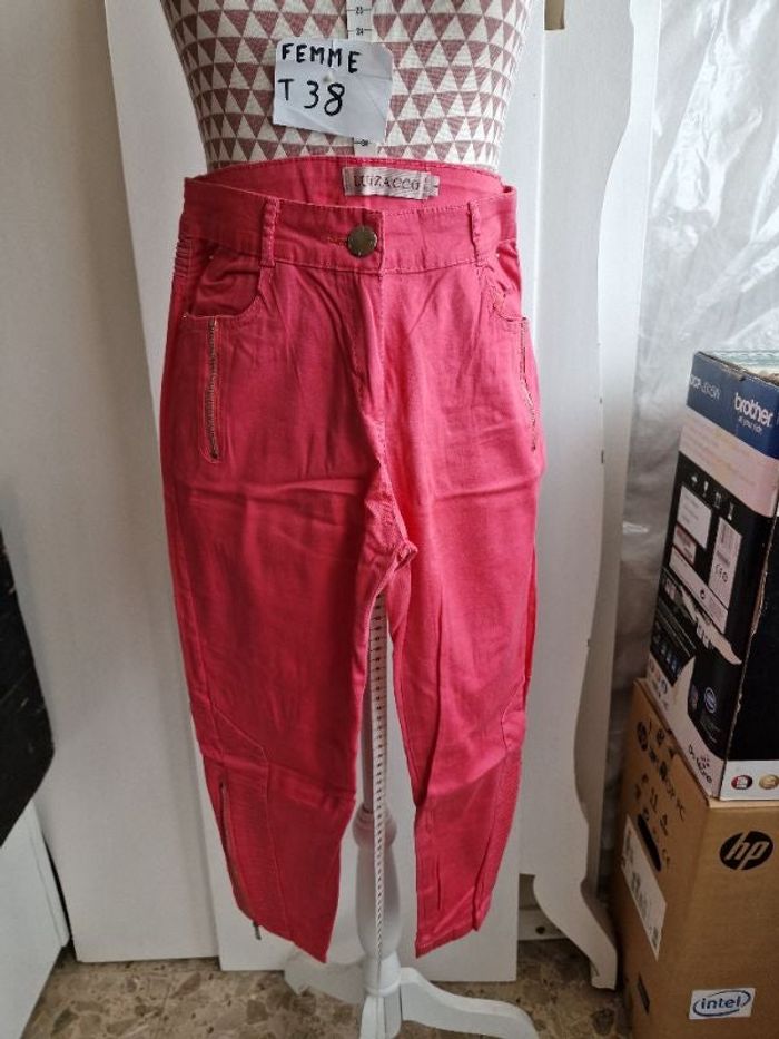 Pantalon, rose, en très bon état (micro accro visible sur photo de longueur),en coton & spandex, longueur 72cm, marque Luizacco =6€