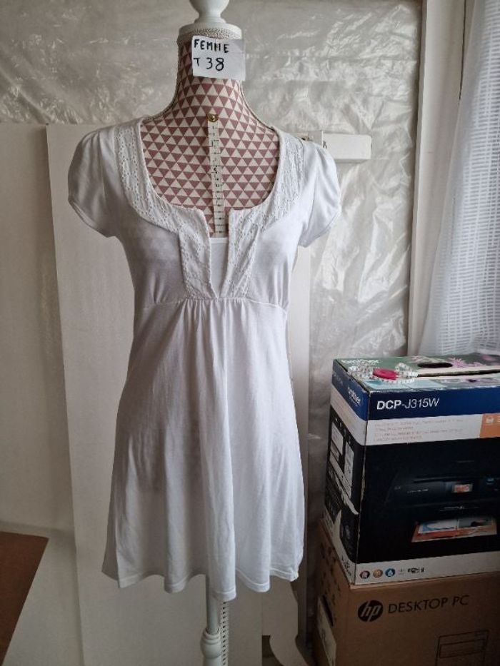 Robe, blanche,en coton,en très très bon état, longueur 75cm, marque Camaïeu =7€