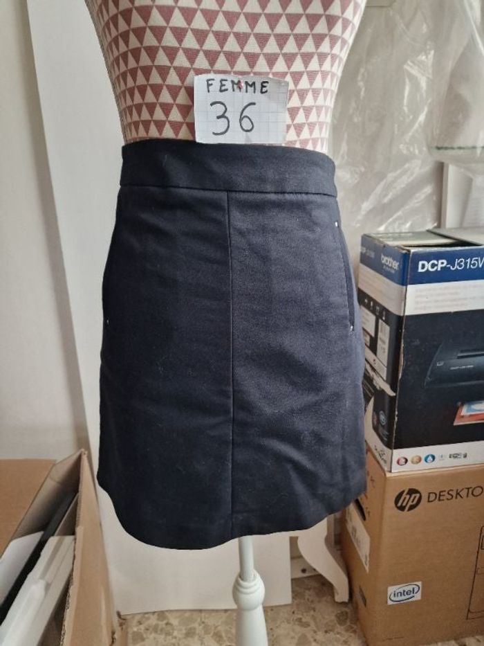 Jupe, noir, longueur 44cm, avec 2 poches latéral, fermeture par zip sur le côté,en coton et elasthanne, en très très bon état, marque Kiabi =4€