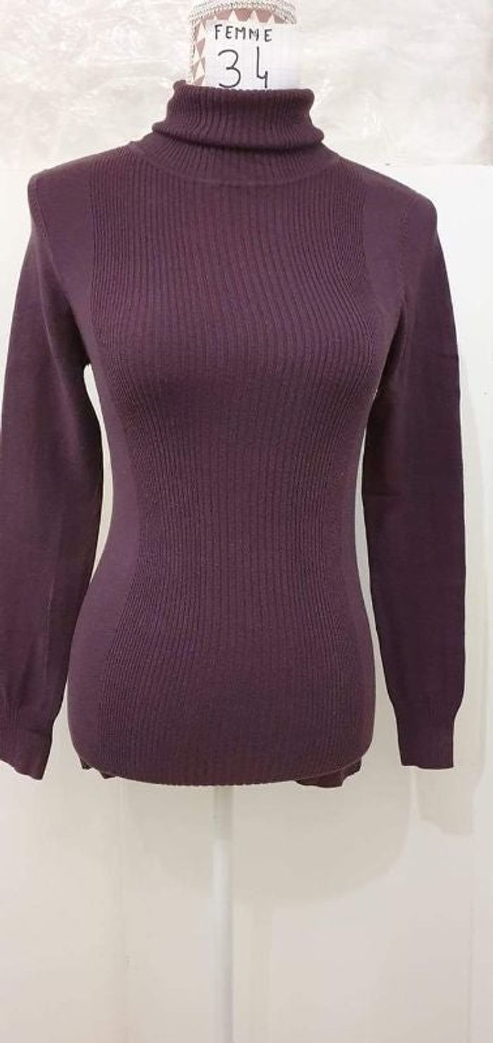 Pull,col roulé,violet,en très bon état, en acrylique,longueur 62cm, marque Mango= 7€