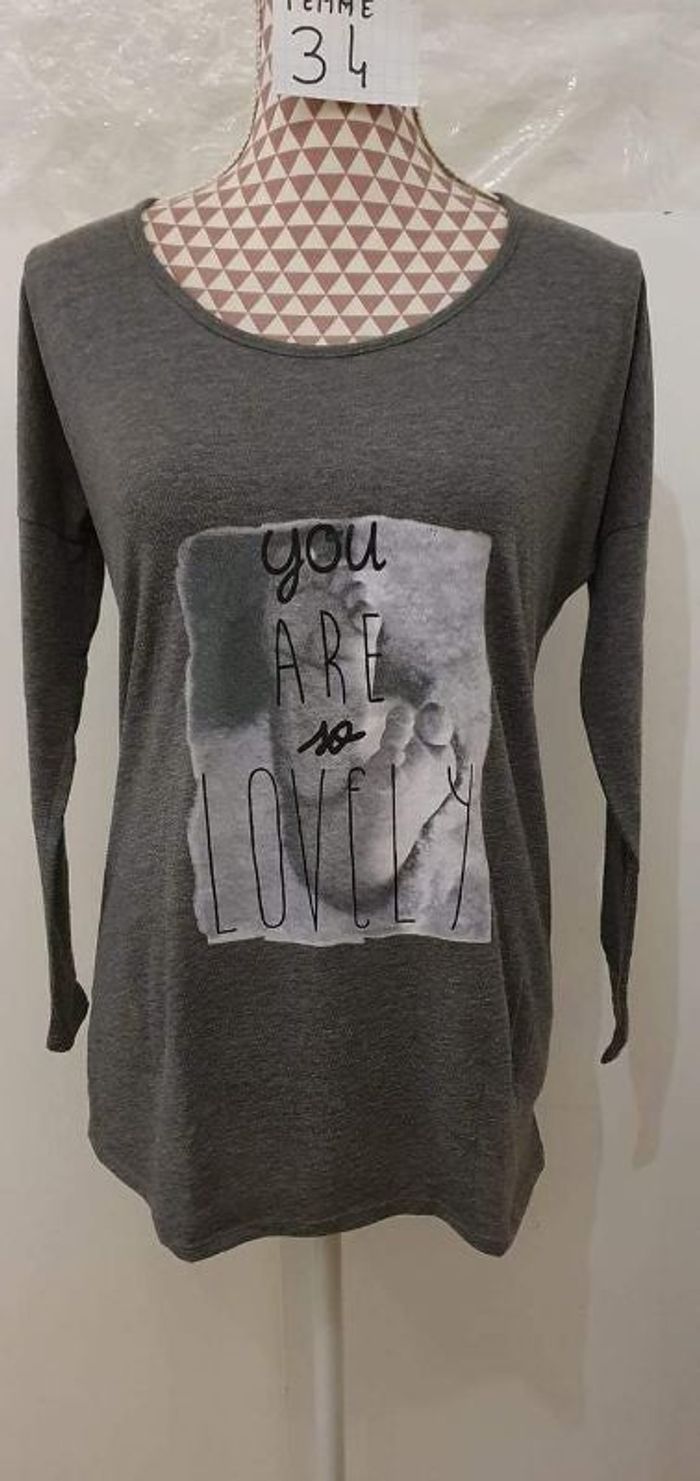 Tee-shirt, gris,en polyester et coton, en très bon état, marque Kiabi =4€