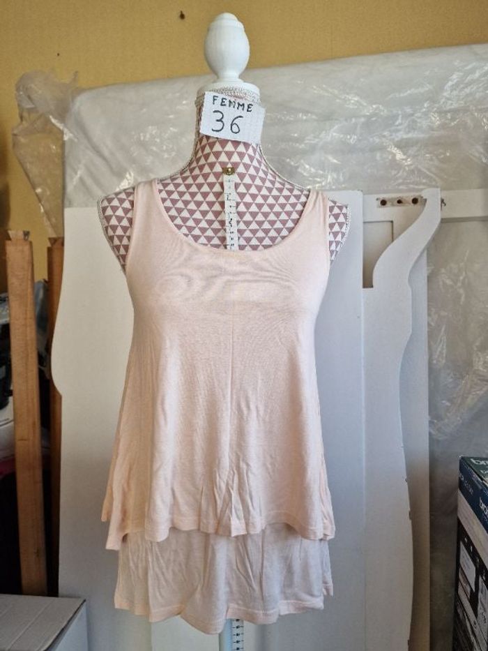 Débardeur, rose pâle, doublé, en viscose, longueur 62cm, en très très bon état, marque Kiabi =4€