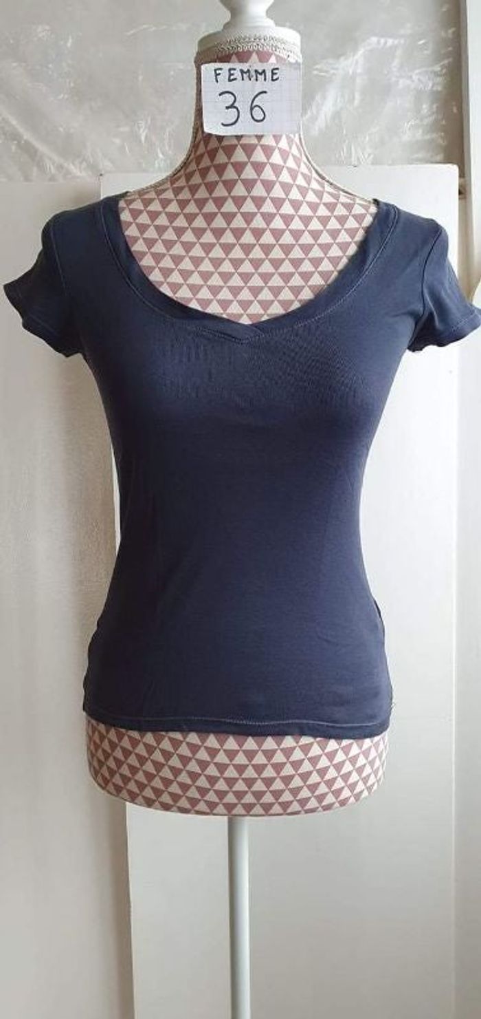 Tee-shirt, bleu marine, coton, en très très bon état, marque Camaïeu =4€